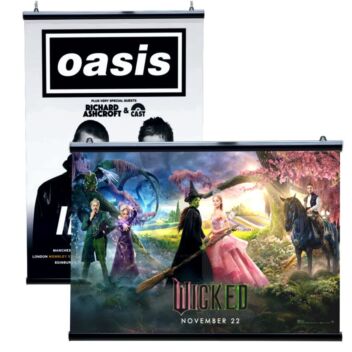 • A stylish black frame can be hung on the wall or screwed securely - without compromising easy poster change.