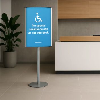 A1 poster display stands can be tall and impressive generating impact from a large poster display. In most circumstances, A1 display stands are not used for portable outdoor poster displays as they would need to be unmanageably heavy in order to prevent toppling in a stiff breeze. However, A boards and similar pavement signs make very good A1 outdoor display stands.