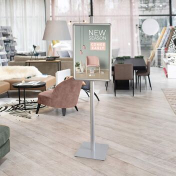 A2 poster stands are used for free-standing poster display - generally stood on the floor. A1 display stands can either be at eye level or else the A-frame type - with the poster displayed closer to the floor.