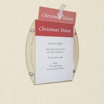 Sign holders and menu holders fixed to the wall with standoff fittings are favoured by many clients, especially in prestige interiors.