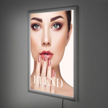 Wall-mounted LED poster light boxes are available in three styles - snap, magnetic and curved. Snap frame poster light boxes and magnetic front lightboxes are based on smart edge lit LED technology - super slim design and very efficient to run. Curved front light boxes also feature a snap-action front opening. As a light source LED offers much lower running costs than other types, combined with a longer service life. The cost of LEDs has come down in recent years, making this the smart choice for today's edge-lit lightbox installations.