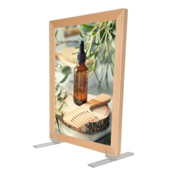 A premium range of aluminium frames for posters - Alu Profile - can be used to hold lightweight, rigid double-sided display boards upright on a counter or hanging from a ceiling, with the help of a comprehensive range of attachment fittings which clip onto the rim of these frames.