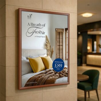 Wood look snap frames are ideal for those seeking a stylish wood frame combined with the convenience of easy poster change, a feature for which snap frames are renowned. These wood-effect snap frames, available in standard paper sizes, come in two styles. Smaller size wood snap frames have safe-to-the-touch plastic tipped corners, while larger sizes have square corners and a wider 1 inch frame surround.